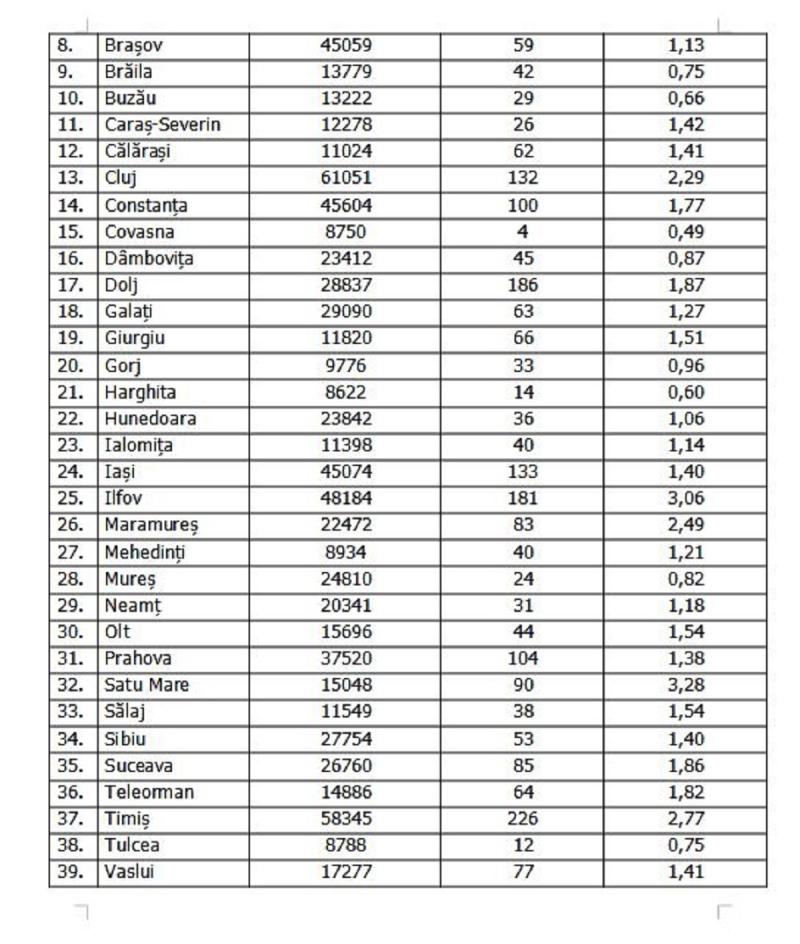 Lista cazurilor pe judeţe 20 septembrie 2021