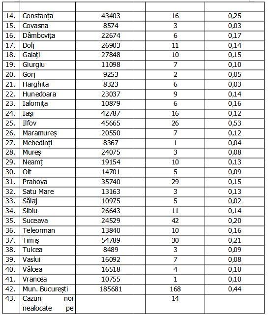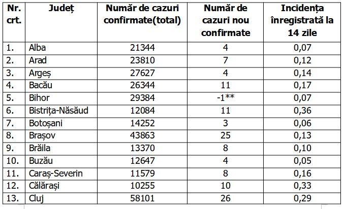 Lista pe judeţe a cazurilor de coronavirus în România, 21 august 2021