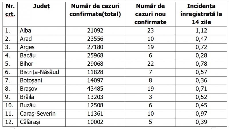 Lista pe judeţe a cazurilor de Covid în România, 21 mai 2021