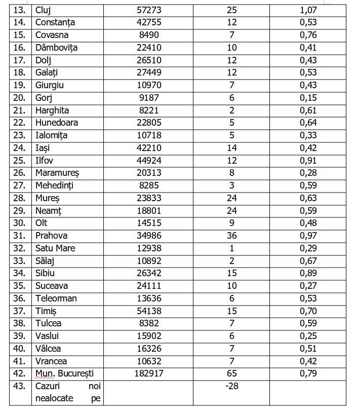 Lista pe judeţe a cazurilor de coronavirus în România, 21 mai 2021