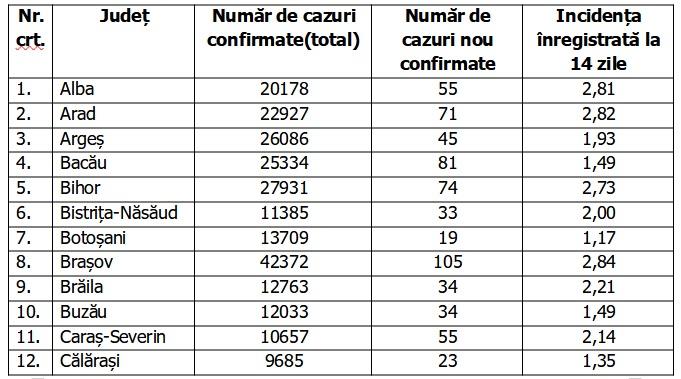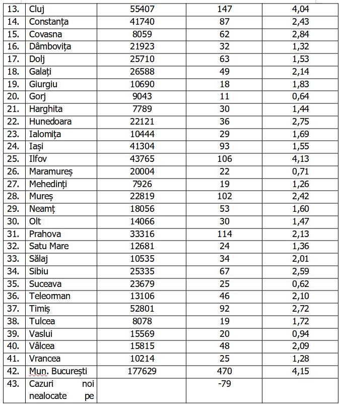 Lista pe judeţe a cazurilor de coronavirus în România, 23 aprilie 2021