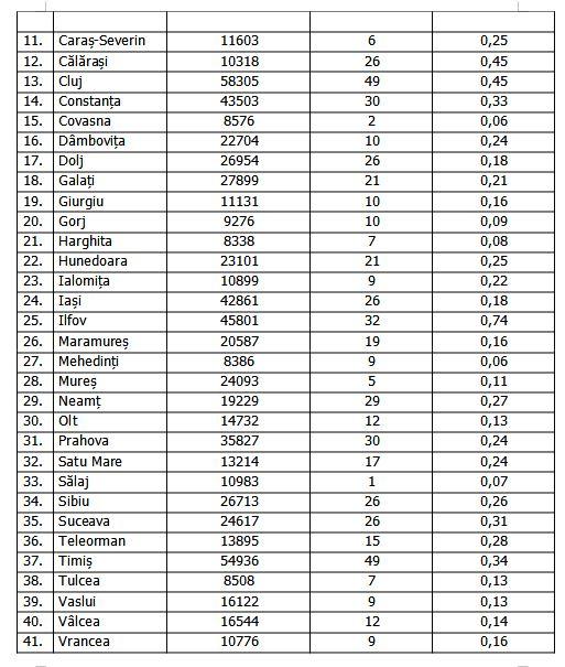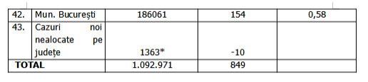 Lista cazurilor pe judeţe 25 august 2021