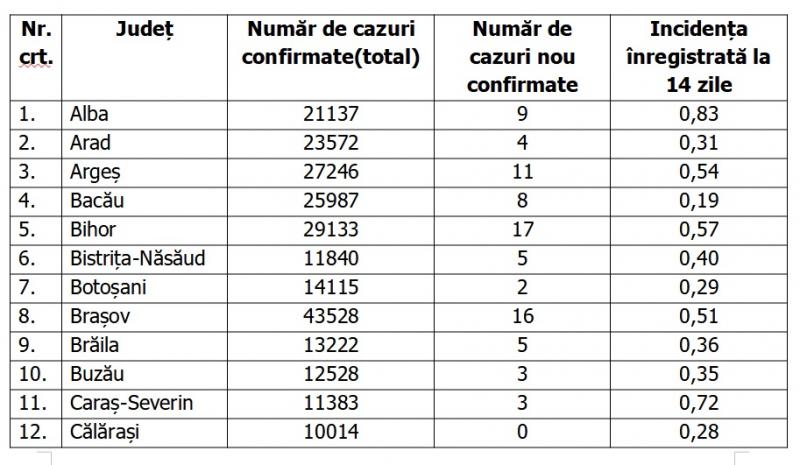 Lista pe judeţe a cazurilor de Covid în România, 25 mai 2021