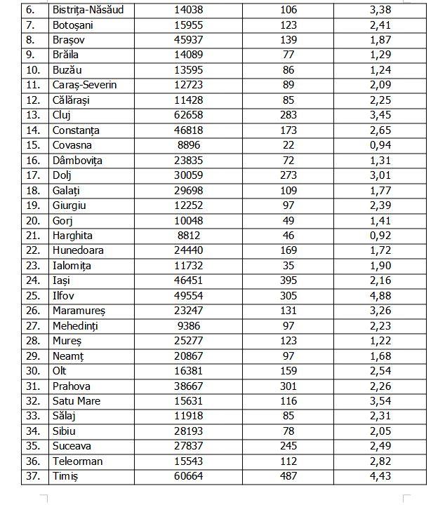 Lista cazurilor pe judeţe 25 septembrie 2021