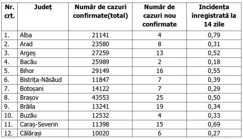 Lista pe judeţe a cazurilor de Covid în România, 26 mai 2021