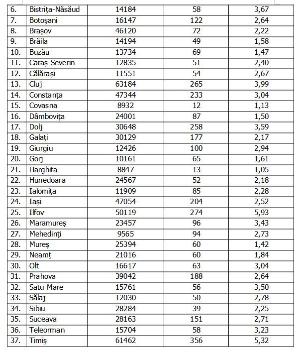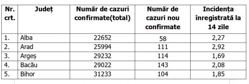 Lista pe judeţe a cazurilor de coronavirus în România, 27 septembrie 2021