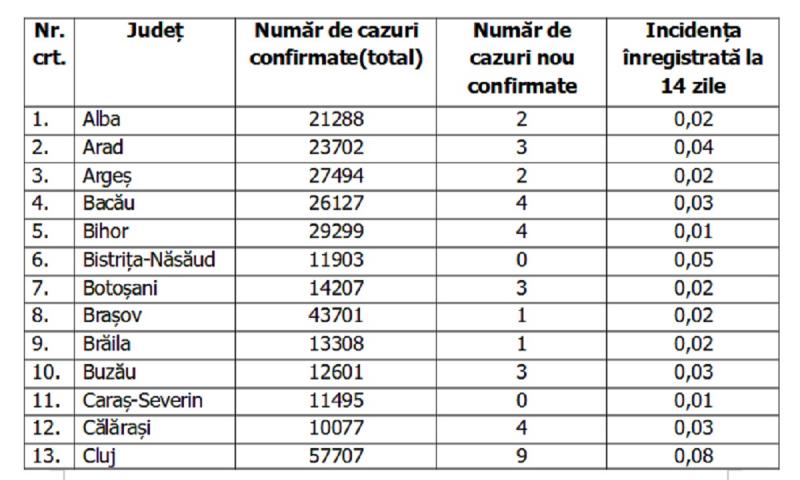 Lista pe judeţe a cazurilor de coronavirus în România, 28 iulie 2021