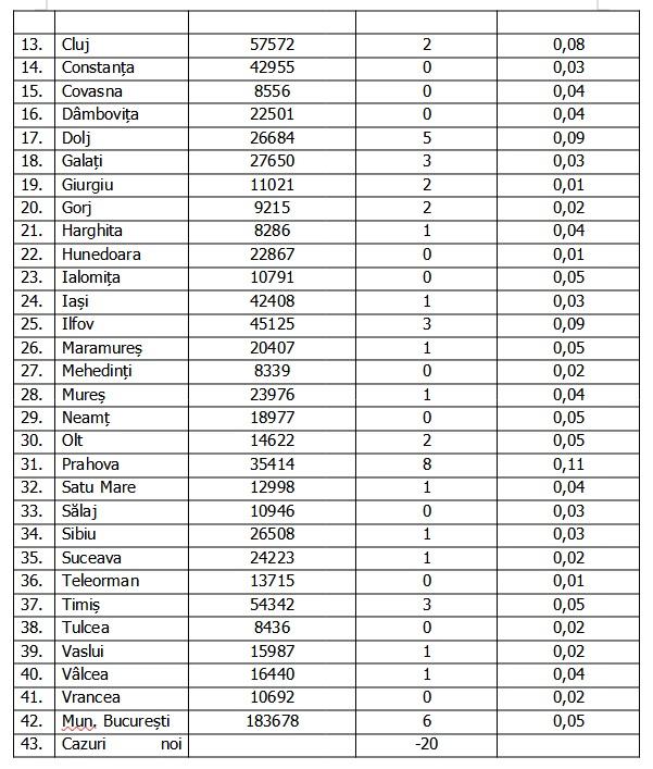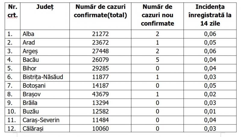 Lista pe judeţe a cazurilor de coronavirus în România, 28 iunie 2021