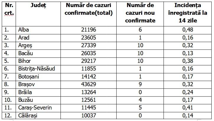 Lista pe judeţe a cazurilor de coronavirus în România, 3 iunie 2021