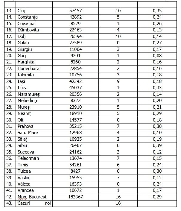 Cele mai multe cazuri noi au fost raportate în București (16).