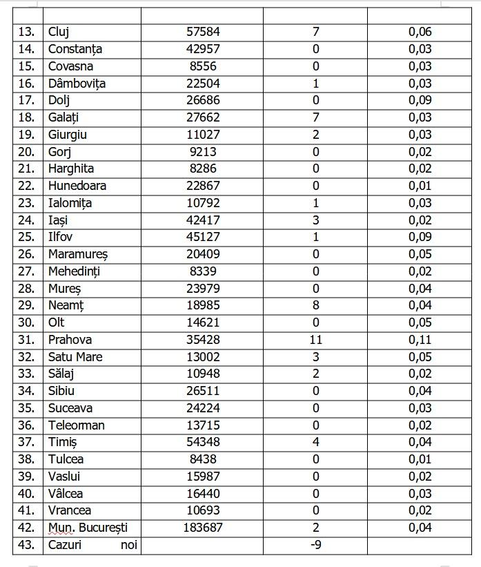 22 de județe nu au raportat niciun caz nou de coronavirus