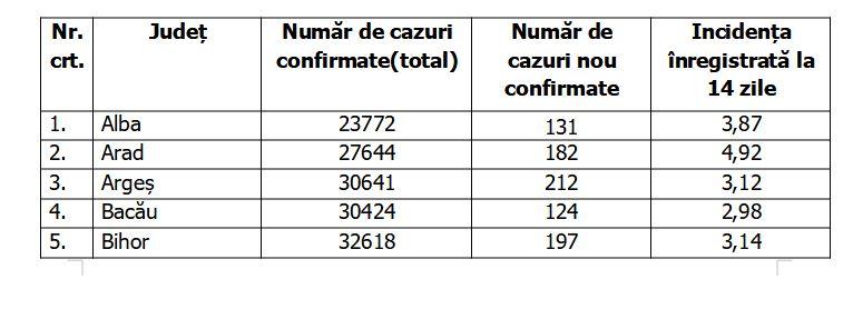 Lista pe judeţe a cazurilor de coronavirus în România, 4 octombrie 2021