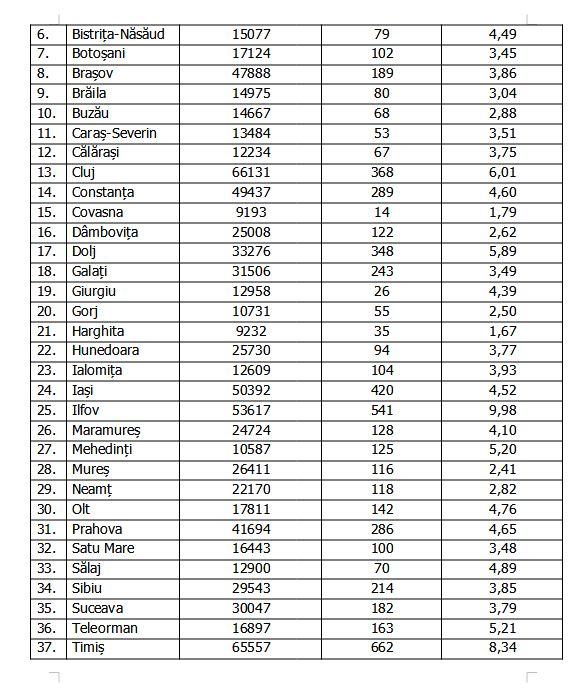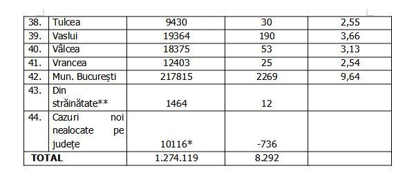 Lista cazurilor pe judeţe 4 octombrie 2021