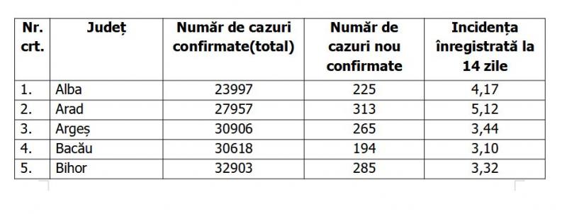 Lista pe judeţe a cazurilor de coronavirus în România, 5 octombrie 2021