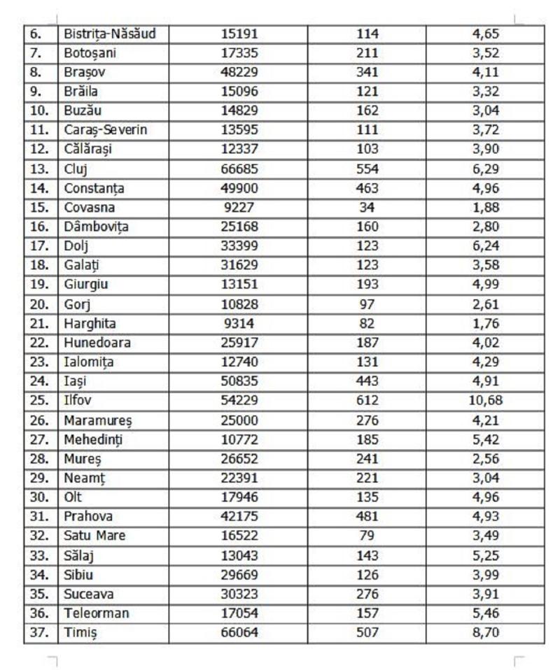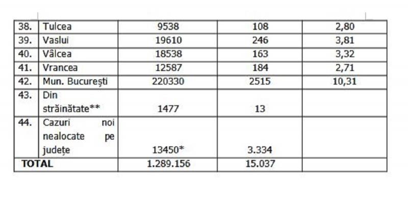 Lista cazurilor pe judeţe 5 octombrie 2021