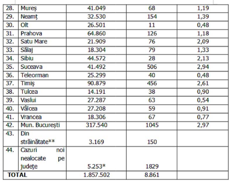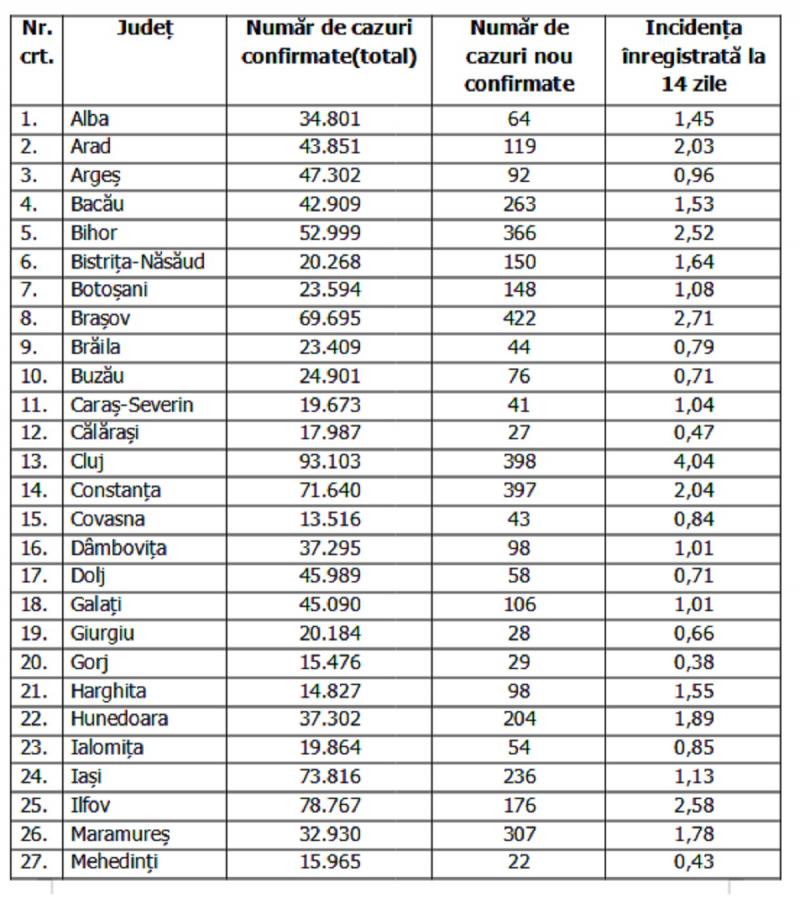 COVID-19. Lista cazurilor pe judeţe 11 ianuarie 2022