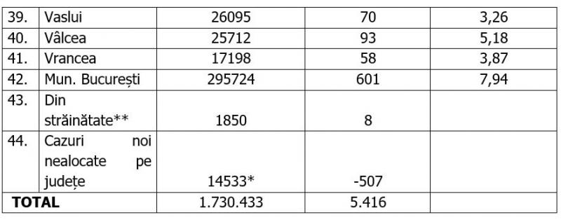 Lista cazurilor COVID pe judeţe 11 noiembrie 2021