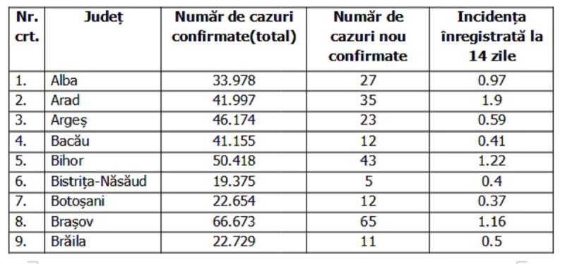 Lista cazurilor pe judeţe 14 decembrie 2021