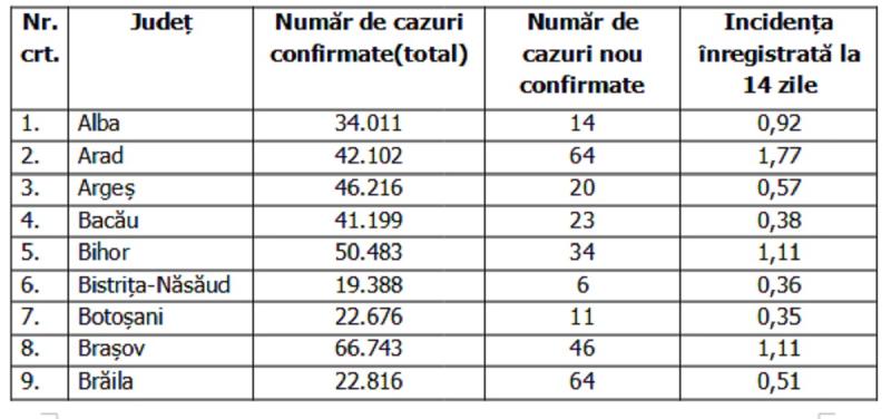 Lista cazurilor pe judeţe 16 decembrie 2021