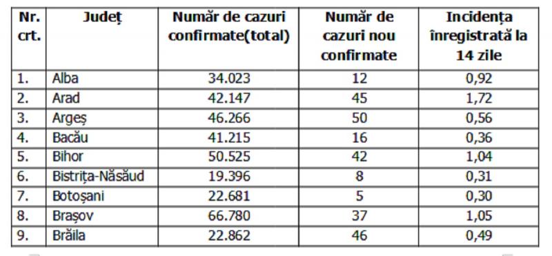 Lista cazurilor pe judeţe 17 decembrie 2021