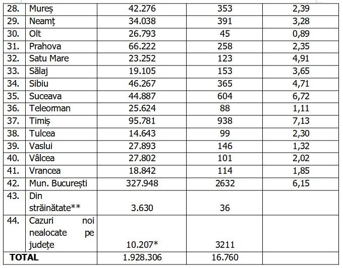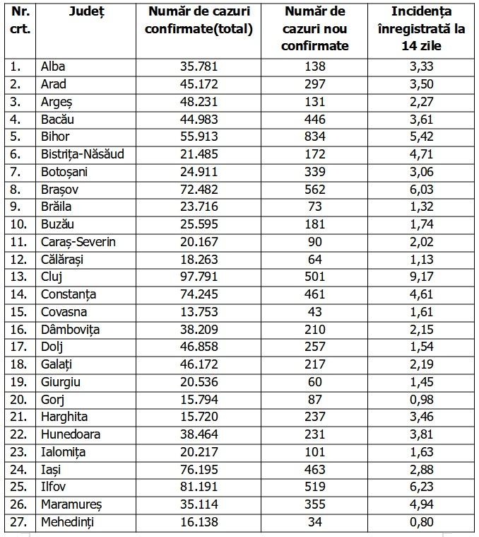 Lista pe judeţe a cazurilor de Covid în România, 18 ianuarie 2022