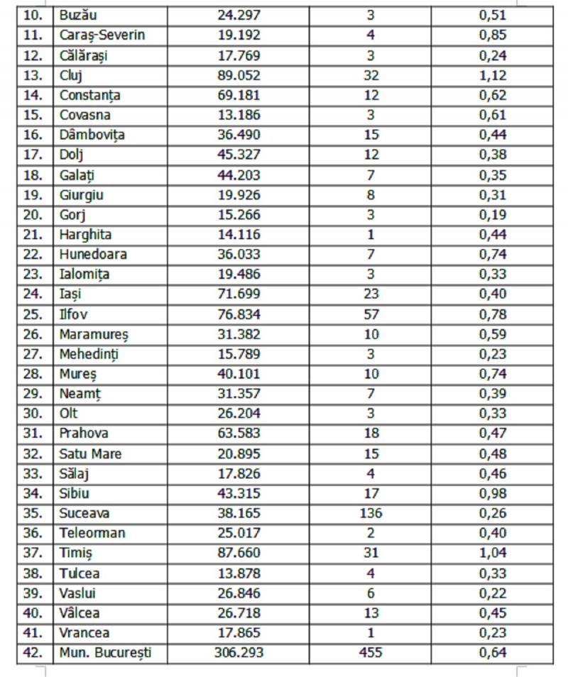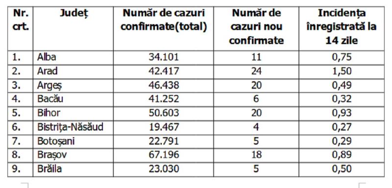 Lista cazurilor pe judeţe 20 decembrie 2021