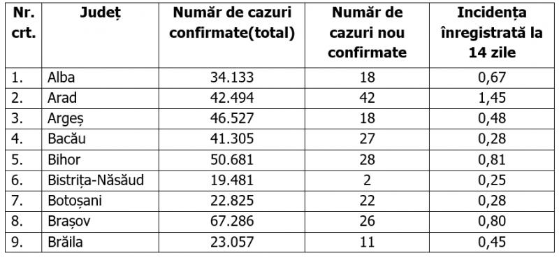 COVID-19. Lista cazurilor pe judeţe 22 decembrie 2021