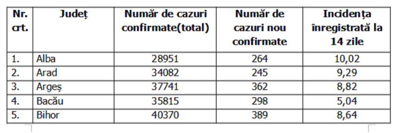 Lista pe judeţe a cazurilor de Covid în România, 24 octombrie 2021