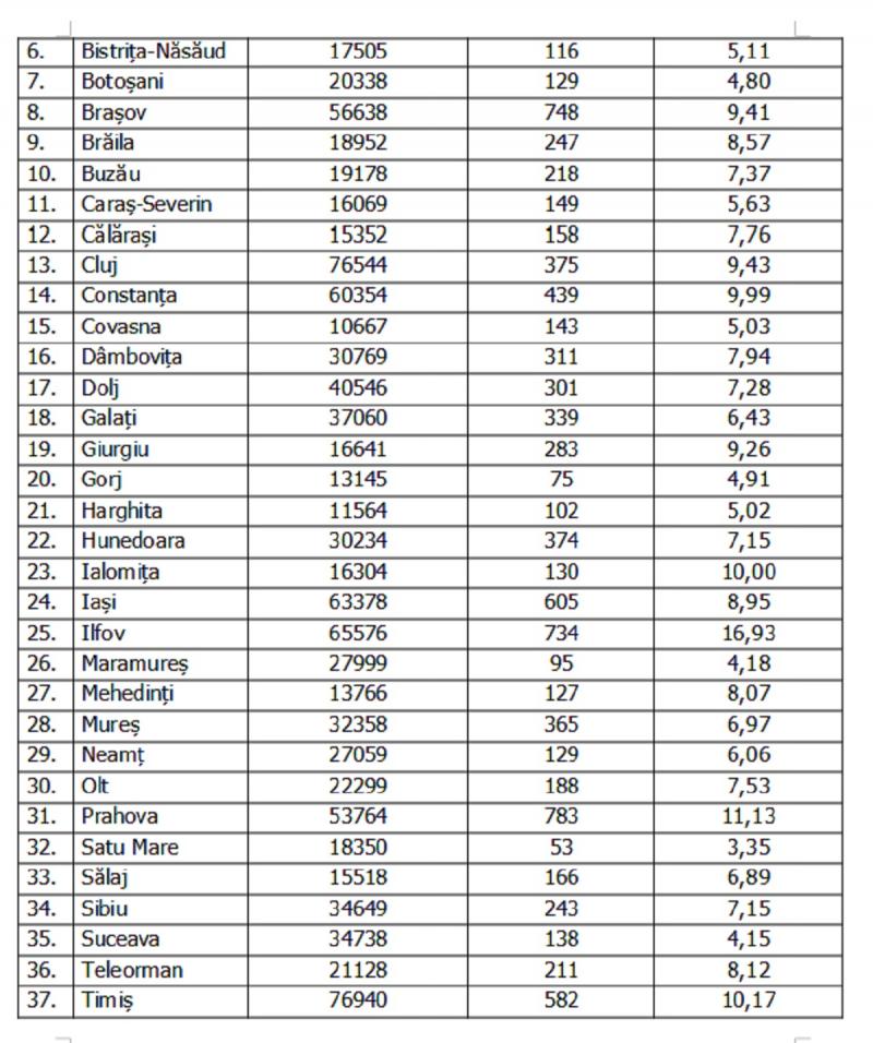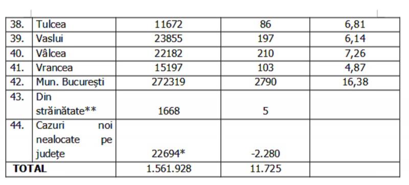 Lista cazurilor pe judeţe 24 octombrie 2021