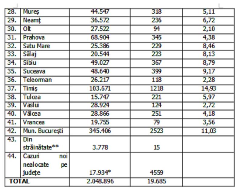 COVID-19. Lista cazurilor pe judeţe 25 ianuarie 2022