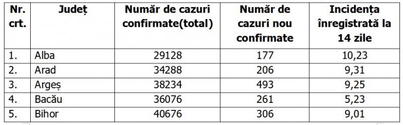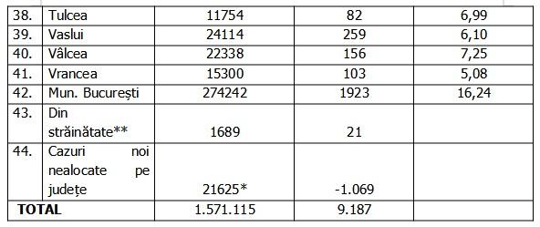 Lista cazurilor pe judeţe 25 octombrie 2021