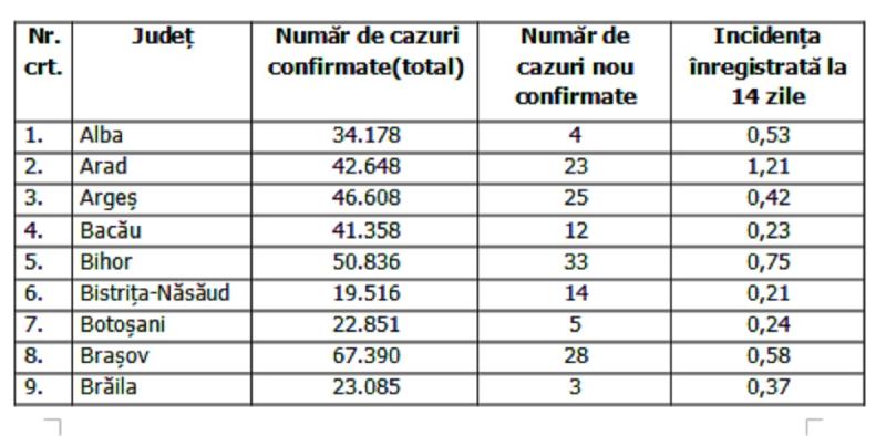 Lista cazurilor de coronavirus pe judeţe a fost actualizată luni, 27 decembrie 2021. Conform reprezentanților Grupului de Comunicare Strategică, bilanţul din țara noastră a ajuns la 1.803.311 de infectări cu noul coronavirus.