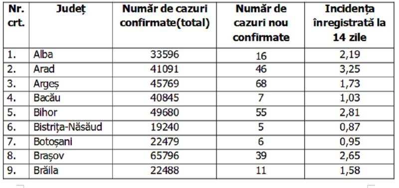 Lista cazurilor pe judeţe 29 noiembrie 2021