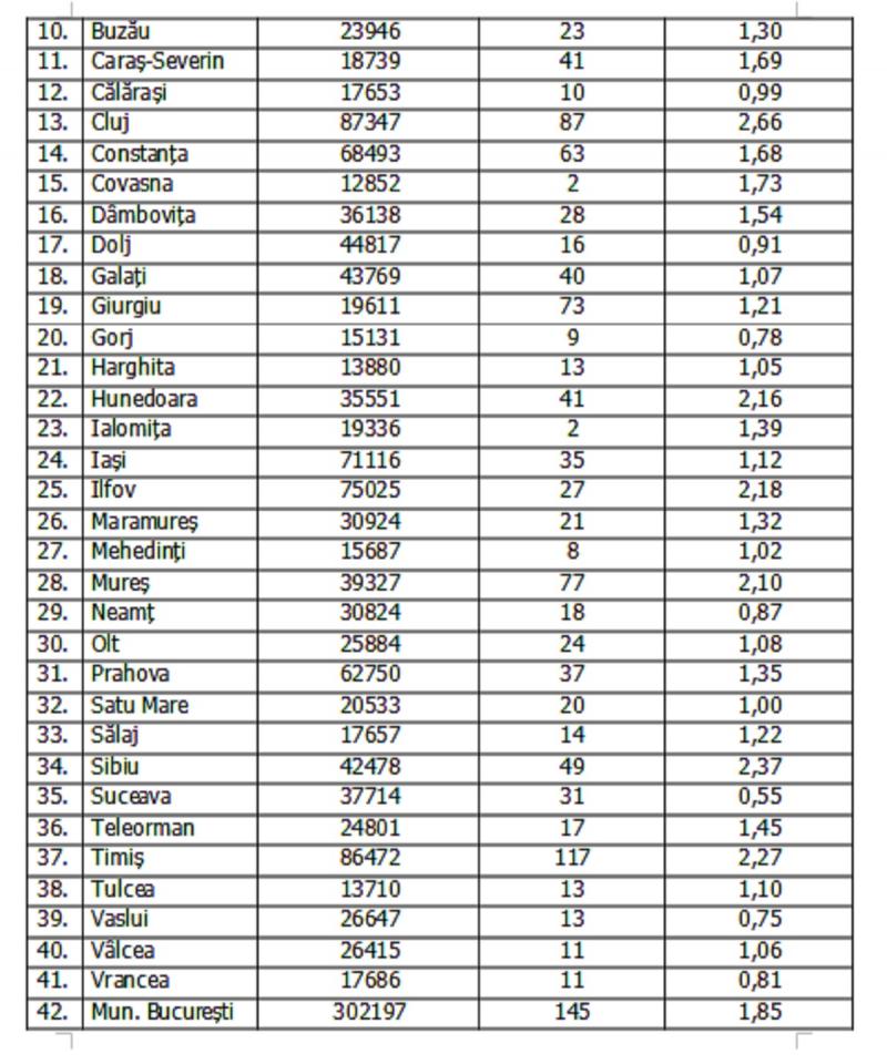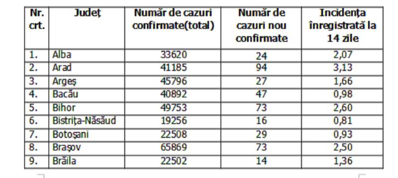 Lista cazurilor pe judeţe 30 noiembrie 2021