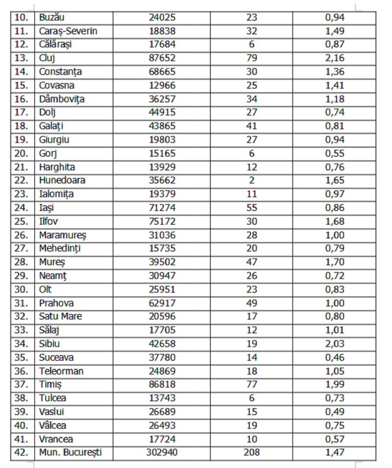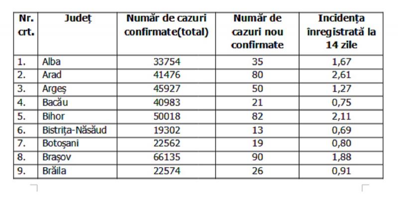 Lista cazurilor pe judeţe 4 decembrie 2021