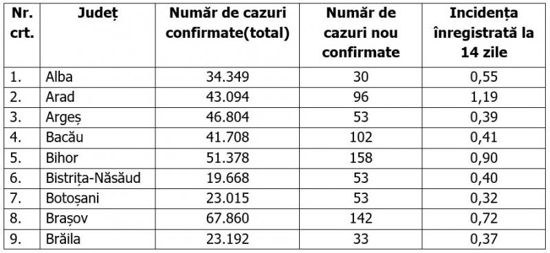COVID-19. Lista cazurilor pe judeţe 4 ianuarie 2022