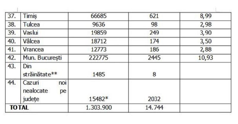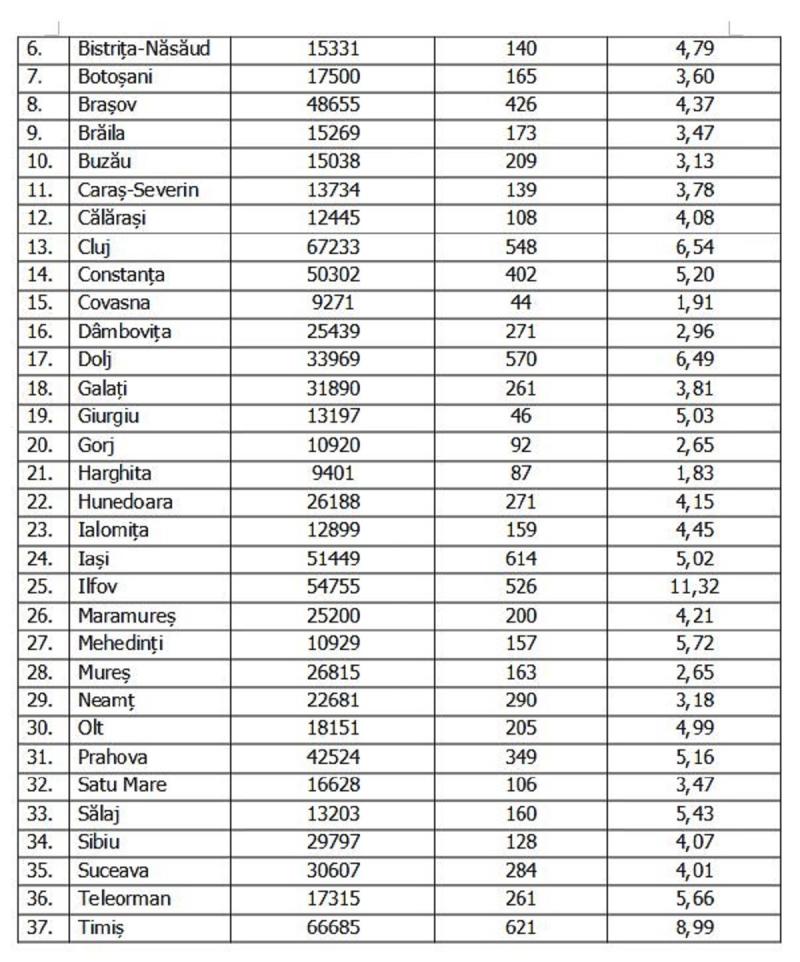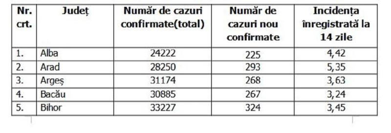 Lista cazurilor pe judeţe 6 octombrie 2021