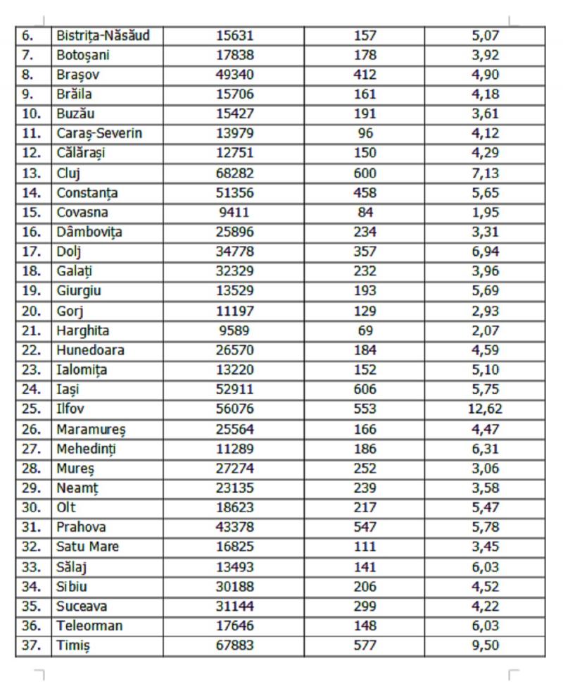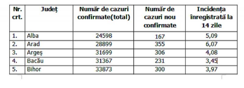 Lista cazurilor pe judeţe 8 octombrie 2021