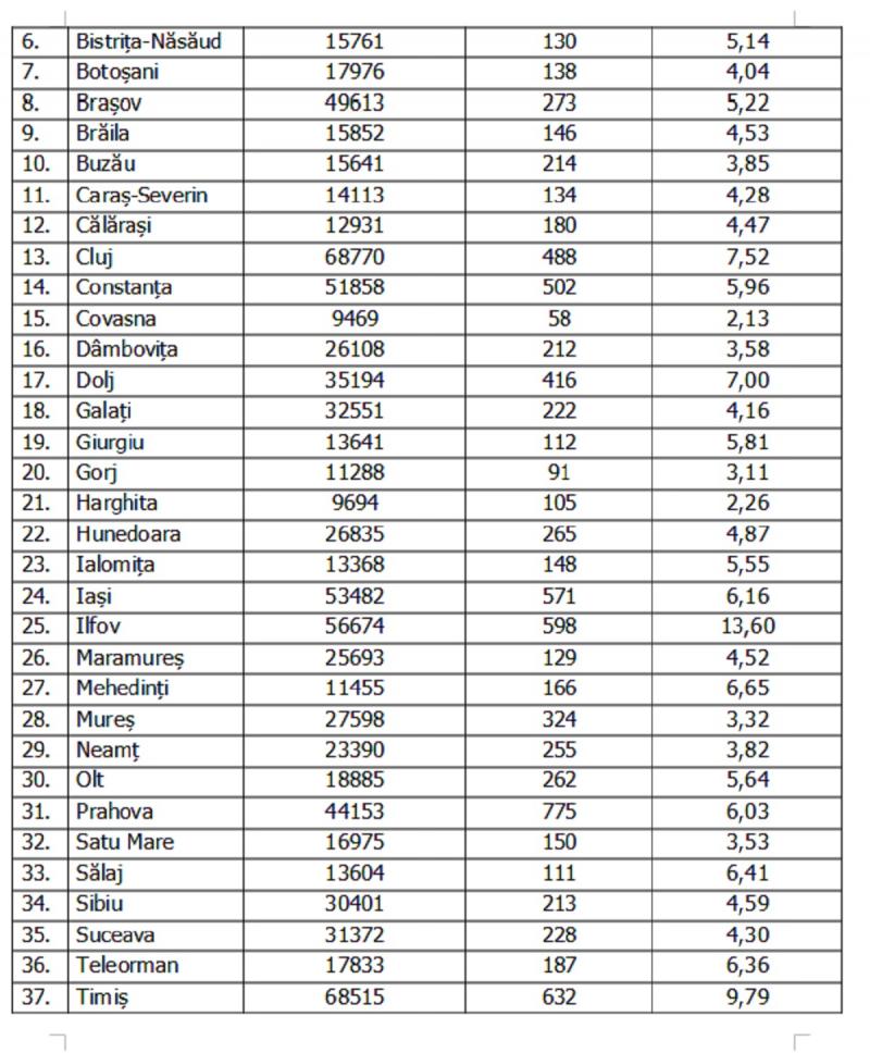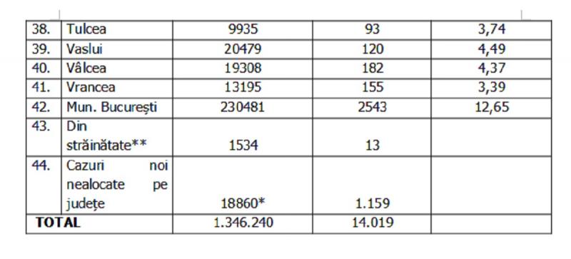 Lista cazurilor pe judeţe 9 octombrie 2021