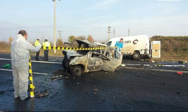 "Accidentul s-a produs pe DN5, în zona localităţii Uzunu. Este vorba despre două autoturisme marca Logan, unul care se deplasa spre Giurgiu, celălalt spre Bucureşti. Din primele informaţii primite de la faţa locului, s-au ciocnit frontal, în urma impactului luând foc. În accident mai este implicată o dubă înmatriculată în Bulgaria, condusă de un cetăţean bulgar, aceasta fiind găsită în şanţul de pe marginea drumului. Cele patru persoane decedate erau pasagere ale celor două autoturisme marca Logan. Au fost găsite carbonizate, nu pot fi identificate, pentru moment. Cele două maşini au ars în totalitate. Cetăţeanul bulgar a fost găsit în viaţă, este conştient, nu a dorit transportul la spital. Traficul rutier este blocat pe DN5, în localitatea Uzunu", au declarat pentru Mediafax oficiali ISU Vlaşca.