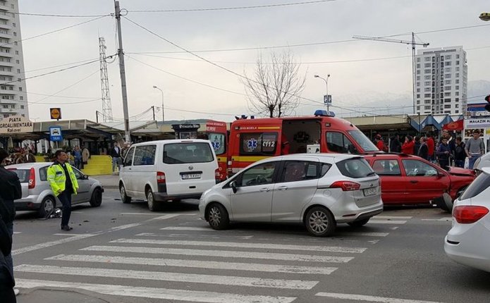 O femeie şi fiul ei de 13 ani au fost răniţi, sâmbătă, după ce trei maşini s-au ciocnit într-o intersecţie din municipiul Sibiu, aflată în apropierea unei pieţe agroalimentare.