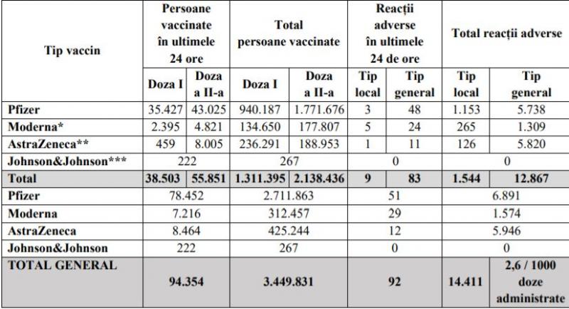 Potrivit datelor puse la dispoziția Comitetului Național de Coordonare a Activităților privind Vaccinarea împotriva COVID-19 (CNCAV) de către Institutul Național de Sănătate Publică (INSPCNSCBT), prin aplicația Registrul Electronic Național al Vaccinărilor (RENV), care ține evidența vaccinărilor, situația din ziua de 5 mai a.c., ora 17.00, este următoarea: