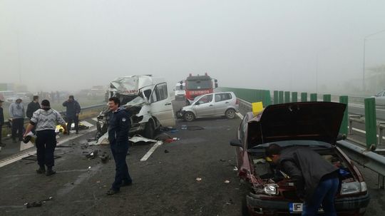 "În acest accident au fost implicate 29 de vehicule. Din primele cercetări a rezultat faptul că cauza principală pentru care s-a produs accidentul este neadaptarea vitezei la condiţiile meteo rutiere. O ceaţă foarte densă, cu o vizibilitate sub 20 de metri”, spune comisarul-şef George Grigore, director adjunct al Direcţiei Rutiere din Poliţia Română.