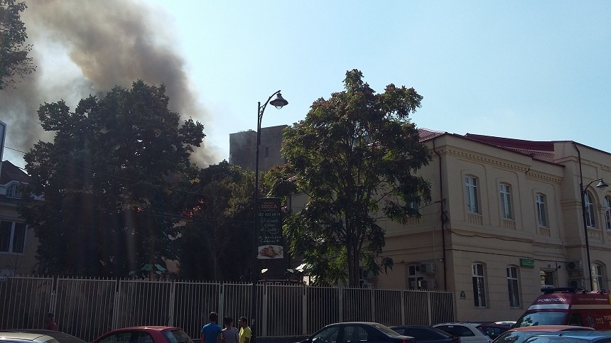 Potrivit acestora, incendiul a fost localizat și se procedează la decopertarea acoperișului pentru stingerea focarelor.