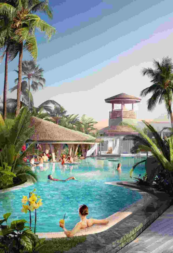 Plaja dispune de o piscină tropicală, 1.500 de şezlonguri pe nisip, peste 600 de palmieri, 40 de măslini, terenuri de fotbal şi volei şi un bar.