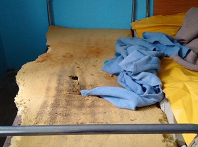 Saloanele şi băile clădirii compuse din parter, două etaje şi un pod se află într-o stare accentuată de degradare, iar în curte se aflau depozitate mai multe paturi din metal, fără spaţii de recreere sau de ocupare a timpului liber pentru pacienţi. Temperatura în saloane era scăzută chiar dacă afară se înregistrau 14 grade, cei mai mulţi pacienţi fiind în paturi îmbrăcaţi şi acoperiţi cu pături.