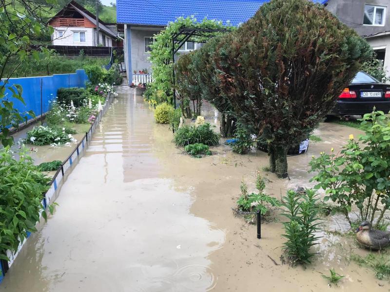În Rozavlea puhoaiele au inundat curțile oamenilor, pe alocuri apa depășind 10 centrimetri adâncime.