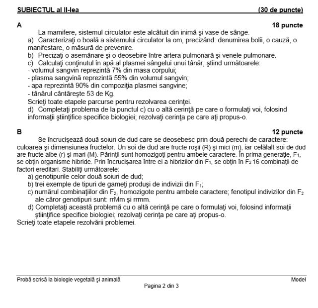 SUBIECTE BAC 2016. EDU.RO. MODEL SUBIECT BIOLOGIE