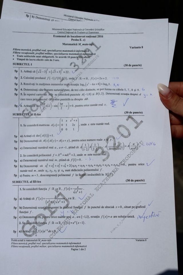 SUBIECTE BAC 2016. EDU.RO Astfel, pentru candidaţii la Bacalaureat, profilele matematică-informatică şi tehnologic, au existat mai multe variante de subiecte date ca model.