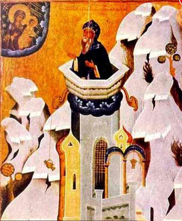 Sfântul Cuvios Simeon a trăit în timpul împăratului Iustin (518-527), fiind originar din Antiohia. A intrat în mănăstire la vârsta de șase ani și s-a supus treptat unei asceze foarte aspre, astfel că a dobândit haruri deosebite, care l-au făcut cunoscut.